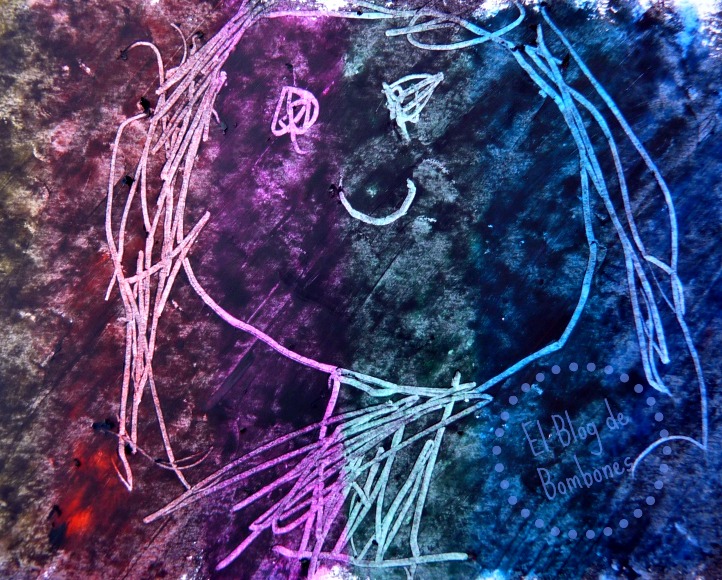 El paso anterior lo habremos preparado nosotros para niños muy pequeños. Si son más mayorcitos, pueden entretenerse con eso también. A continuación viene la parte divertida: hacer los grabados. Para esto necesitaremos un palillo, o cualquier otro objeto que tenga una punta roma.